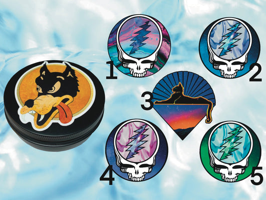 "Wolf" Grateful Dead Round Tin | FREE 3" Vinyl Sticker Included!